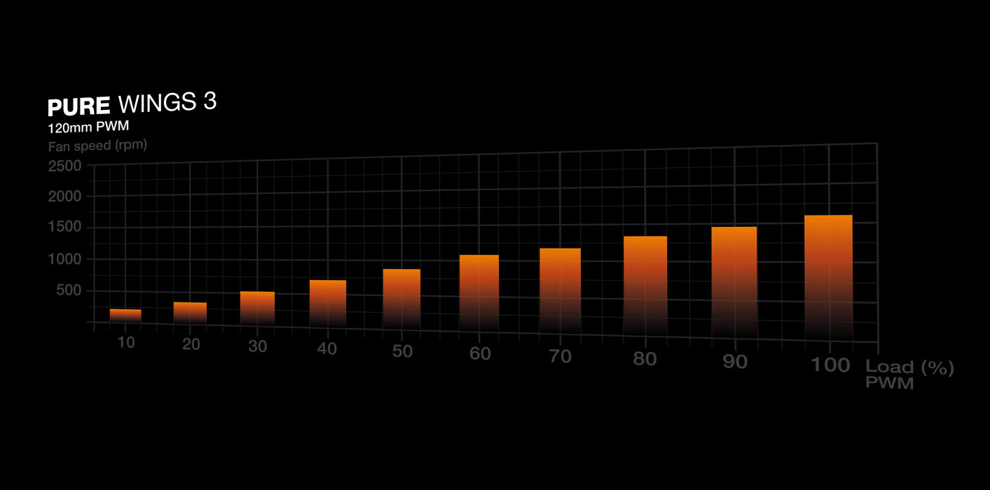 With low minimum rpm and high top-end speed, Pure Wings 3 120mm PWM are the perfect addition to PCs for any application. The fan offers outstanding reliability and makes for a long-lasting, companion for your gaming system. Its iconic design lets anyone immediately recognize it as be quiet! fan and adds a touch of elegance to any configuration.