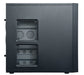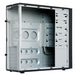2x ext. 5,25", 1x ext. 3,5" and 3x int. 3,5" drives can be installed behind this unique front panel. All connectors such as USB 2.0 and Audio are positioned in the front panel and are ergonomically easy-to-access. In addition, the possibility to install 3x 120mm and 2x 80mm fans ensures optimal ventilation resulting in a perfect thermal solution of the chassis.