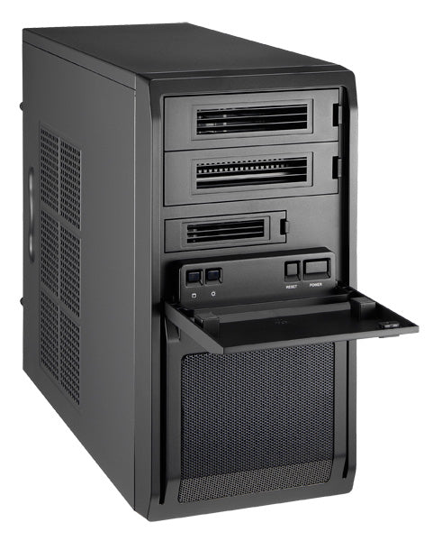 Chieftec LT-01B-OP. Form factor: Mini Tower, Type: PC, Product colour: Black. Power supply location: Top. Front fans diameters supported: 80,90,120 mm, Rear fans diameters supported: 80,90,120 mm. Supported HDD sizes: 2.5,3.5". Width: 180 mm, Depth: 425 mm, Height: 352 mm