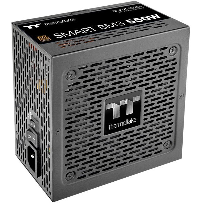 Thermaltake Smart BM3. Total power: 550 W, AC input voltage: 100 - 240 V, AC input frequency: 50/60 Hz. Motherboard power connector: 24-pin ATX, Motherboard power cable length: 60 cm, SATA power cable length: 150,500 mm. Purpose: PC, Power supply unit (PSU) form factor: ATX, 80 PLUS certification: 80 PLUS Bronze. Product colour: Black, Cooling type: Active, Fan diameter: 12 cm. Safety: CE/UKCA/LVD/UKCA/FCC/ICES/TUV/CB/cTUVus/BSMI/CCC