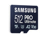 Samsung MB-MY512SB/WW. Capacity: 512 GB, Flash card type: MicroSDXC, Internal memory type: UHS-I, Read speed: 200 MB/s, Write speed: 130 MB/s, UHS Speed Class: Class 3 (U3), Video Speed Class: V30. Protection features: Drop proof, Magnet proof, Temperature proof, Waterproof, X-ray proof, Product colour: Blue