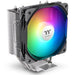 Thermaltake UX400 ARGB Sync. Type: Air cooler, Fan diameter: 12 cm, Rotational speed (min): 700 RPM, Rotational speed (max): 1800 RPM, Maximum air pressure: 1.47 mmH2O, Bearing type: Hydraulic. Voltage: 5 / 12 V. Width: 92 mm, Depth: 125 mm, Height: 152 mm. Product colour: Black