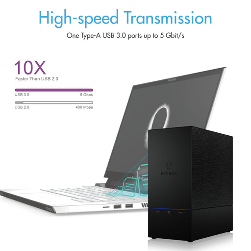 View full detailsExternal USB 3.2 Gen 1x1 aluminium enclosure for two 3,5" SATA HDDs with RAID feature (0 / 1 / Large / Normal).Nominal data transfer rate:up to 5 G...