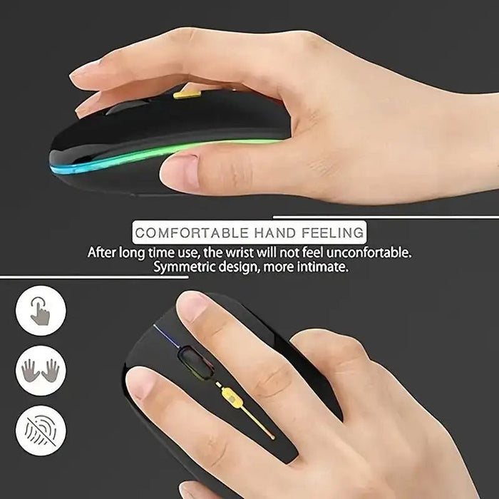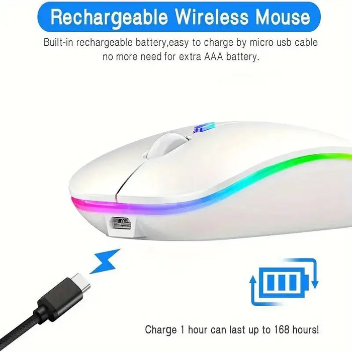 Rechargeable Wireless Silent Office Mouse With LED Color Light And BT5.2 - Perfect For PC, Laptop, Windows & IOS Systems.