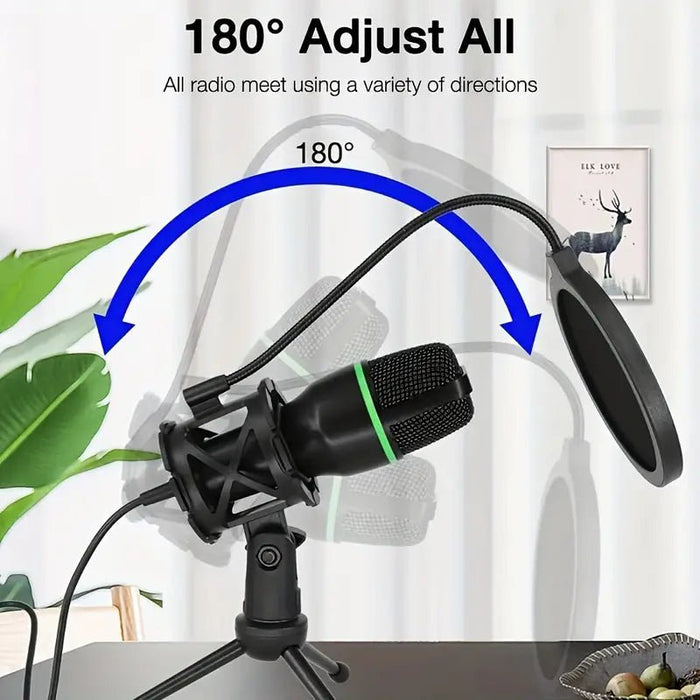 PC-Link Versatile USB Microphone with 3.5mm Jack for Live Streaming, Gaming, Video Calls & Singing - Includes Tripod Stand, Black.
